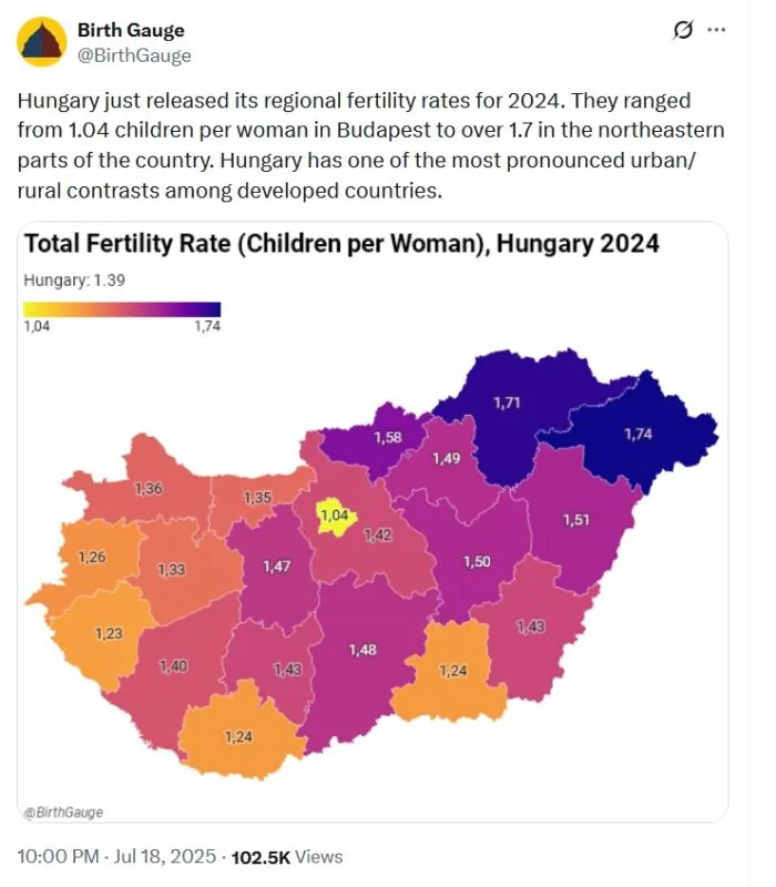 Hlavný politický poradca premiéra Balázs Orbán na platforme X 20. júla potvrdil postoj maďarskej vlády, že odpoveďou na demografickú krízu západného sveta je rodinná politika a nie imigrácia.