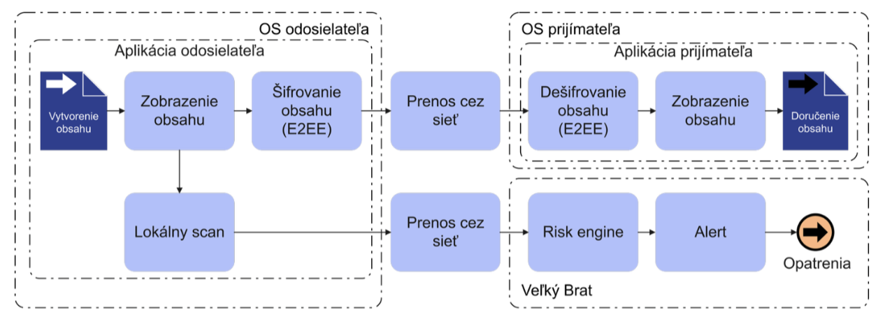 „Technicky ide o tzv. client-side scanning, t. j. skenovanie priamo na zariadení používateľa, ešte pred odoslaním správy. Šifrovaný kanál sa síce formálne zachová, avšak ochrana súkromia sa stratí. Inými slovami povedané: je jedno, že obálka bude zapečatená, ak vám list prečíta niekto ešte predtým, ako ho vložíte do obálky,“ skonštatoval.