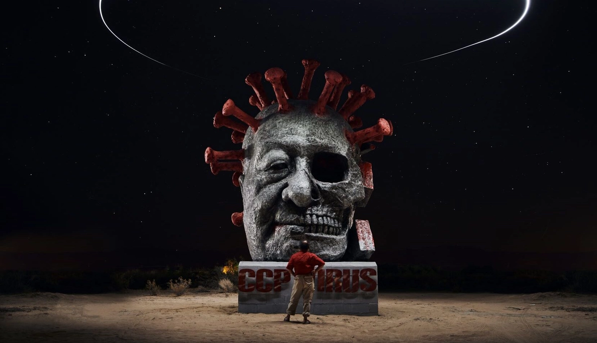 Socha zobrazovala portrét čínskeho vodcu Si Ťin-pchinga rozdelený na dve polovice, pričom jednu z nich predstavovala lebka. Celú hlavu pokrývali hroty symbolizujúce vírus, ktorý spôsobuje covid.