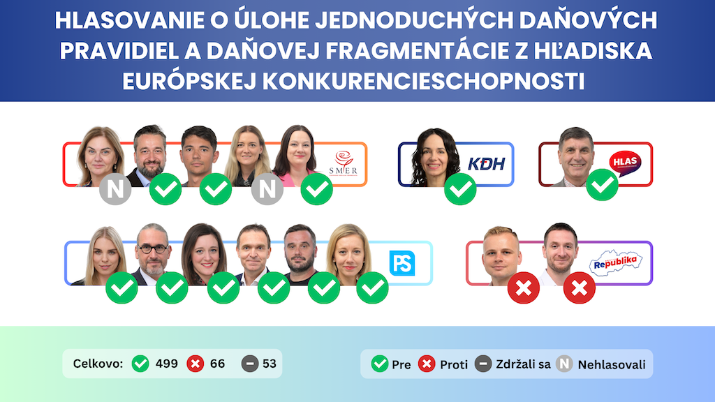 Európsky parlament 9. októbra schválil dôležité uznesenie o úlohe jednoduchších daňových pravidiel a daňovej fragmentácie v európskej konkurencieschopnosti.
