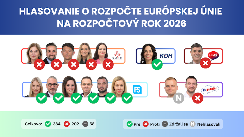 Európsky parlament (EP) 22. októbra schválil svoj postoj k rozpočtu EÚ na rok 2026 vo výške 193,9 miliardy eur. Ide o nárast o 597,8 milióna eur oproti pôvodnému návrhu Európskej komisie. Finálne číslo však ešte nie je definitívne – nasledujú rokovania s Radou EÚ (vládami členských štátov), ktoré začnú 4. novembra.