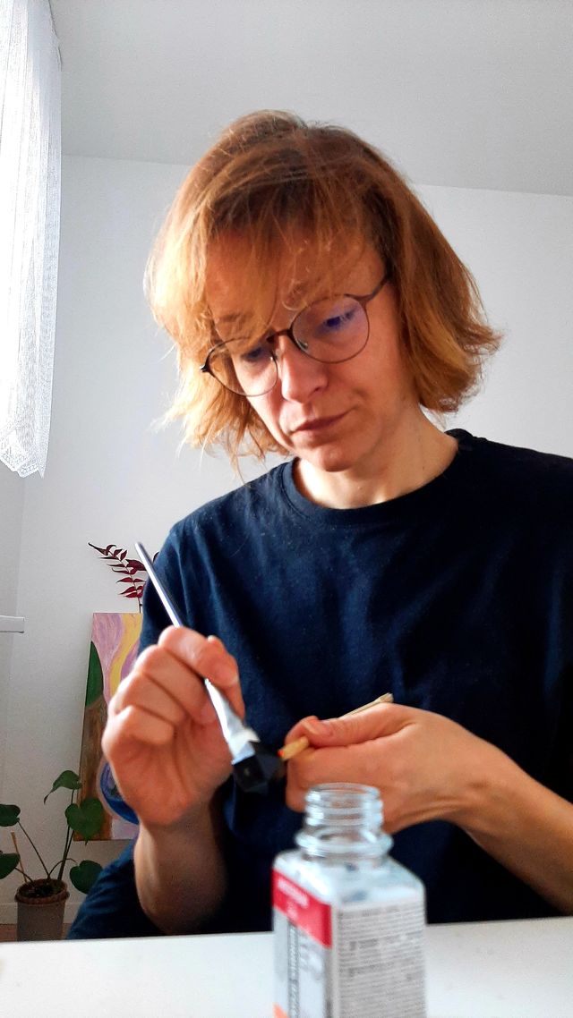 Najbláznivejšie boli náušnice, ktoré som zafarbila s fosforeskujúcou akrylovou farbou. Je to farba obohatená o luminiscenčné pigmenty, ktoré dokážu ukladať svetlo a následne ho postupne uvoľňovať. Takže náušnice v tme svietili. Bola to výroba pre špeciálnu zákazníčku.
