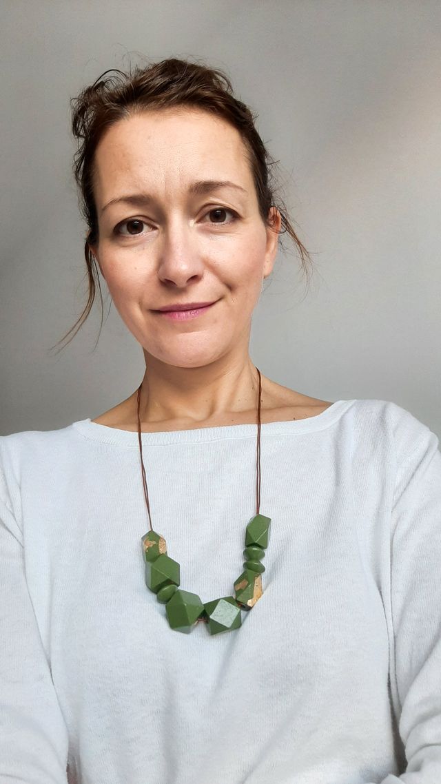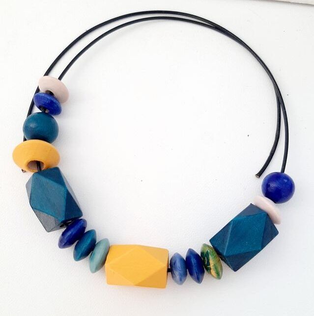 Tvar aj veľkosť vychádzajú z charakteru samotného náhrdelníka. Zohľadňujem jeho účel, štýl, proporcie a to, aký dojem má vo výsledku vytvoriť. Niektoré kúsky potrebujú jemnosť a minimalizmus, čo prevláda skôr u mojich náhrdelníkov zo skla. U drevených náhrdelníkov prevláda zase výraznosť a dominantnejšie línie. Veľkú rolu hrá aj osobnosť zákazníka či príležitosť, pre ktorú je šperk určený.