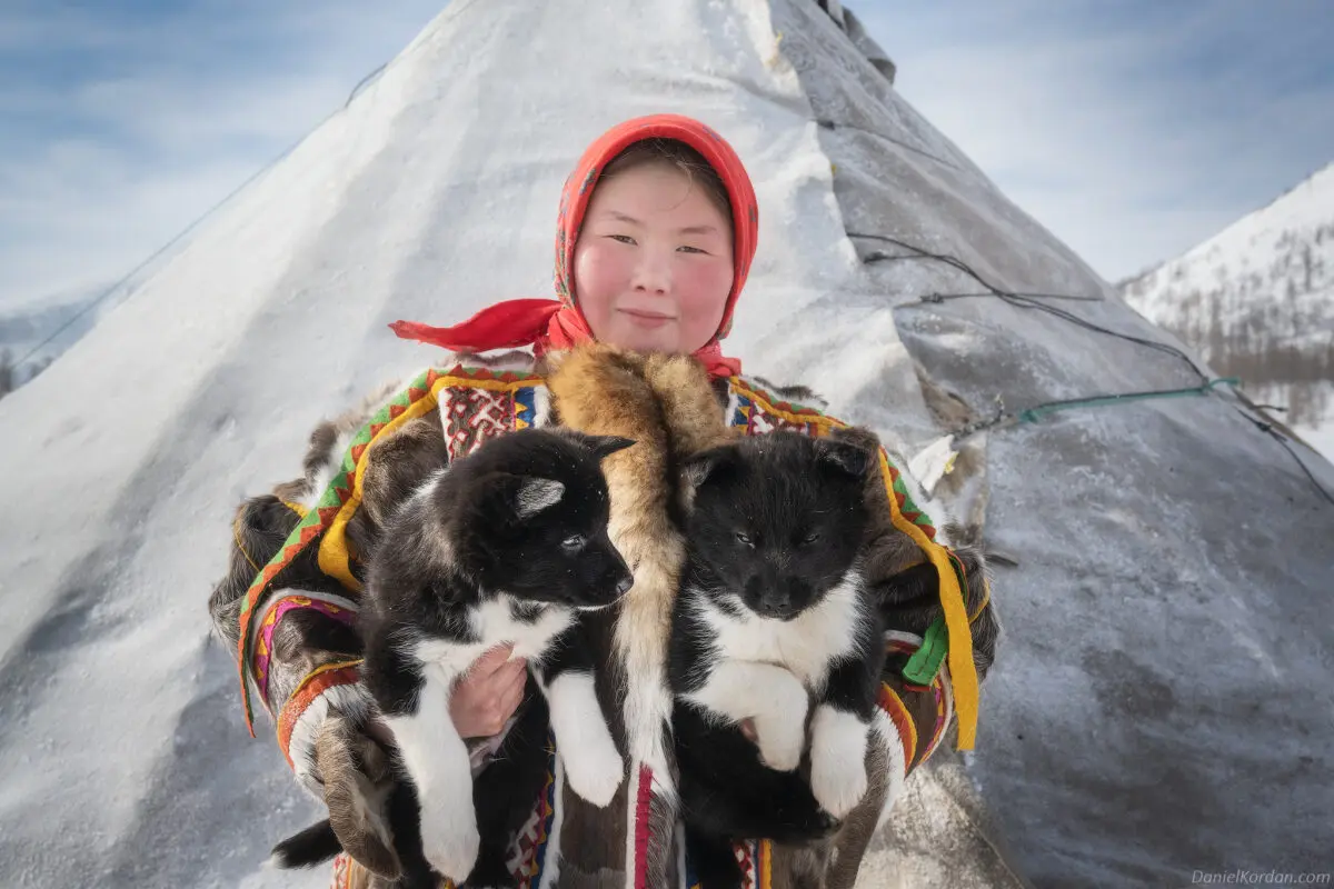 V čume sa kúri len večer, a ráno je vnútri takmer rovnaká zima ako vonku. Napriek tomu mal fotograf jedinečnú príležitosť zachytiť každodenný život Nencov – od ich tradičných odevov, cez verné samojedy, až po ich pozoruhodne pokojné deti. „Za celý týždeň som nepočul jediné detské zaplakanie či krik,“ poznamenal.