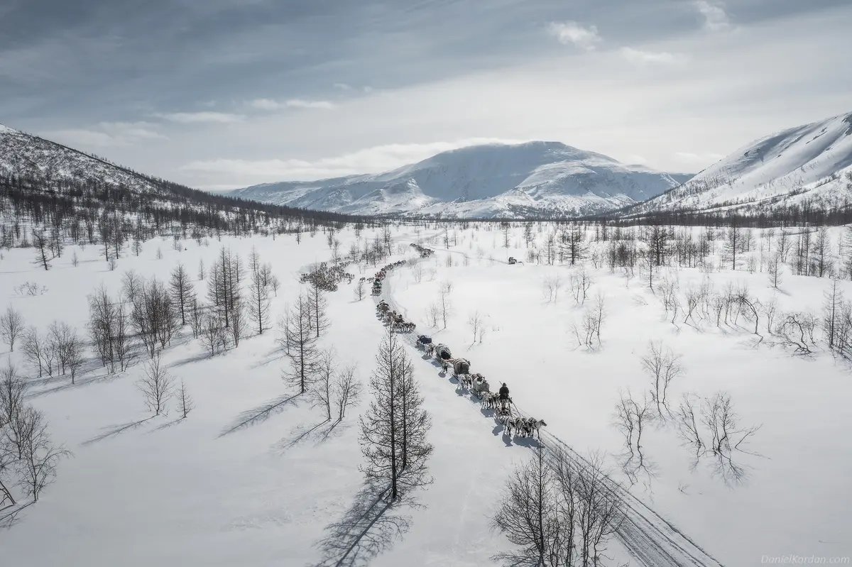Vrcholom jeho cesty bolo sprevádzanie kočovníkov počas argišu – veľkolepej migrácie Nencov na sever. „Je to nádherné podujatie: desiatky doslova ‘vlakov’, ktoré zostavia zo saní, prechádza údoliami popri kopcoch a horách,“ opísal Kordan, ktorý na snežnom skútri hľadal tie najlepšie uhly na fotografovanie.
