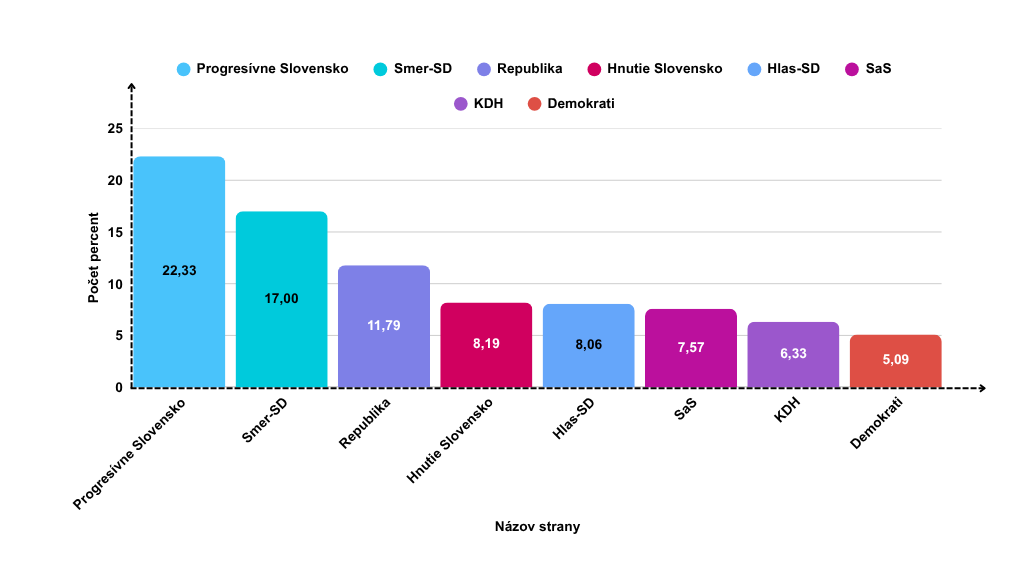 Kriedová revolúcia, exekúcia ministra vnútra Matúša Šutaja Eštoka ani demisia podpredsedu vlády pre plán obnovy Petra Kmeca nezhoršili preferencie Smeru-SD ani Hlasu-SD. Ukázal to najnovší prieskum volebných preferencií od agentúry SCIO. Keby sa voľby konali v polovici novembra, na prvom mieste by skončilo Progresívne Slovensko s 22,33 percenta voličských hlasov. Na druhom mieste by skončila strana Smer-SD so 17 percentami. Za Smerom by nasledovalo hnutie Republika s podporou 11,79 percenta.