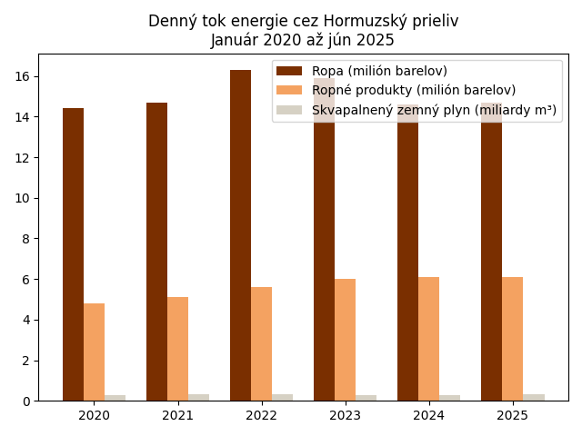 Export ropy cez Hormuzský prieliv, údaje k júnu 2025