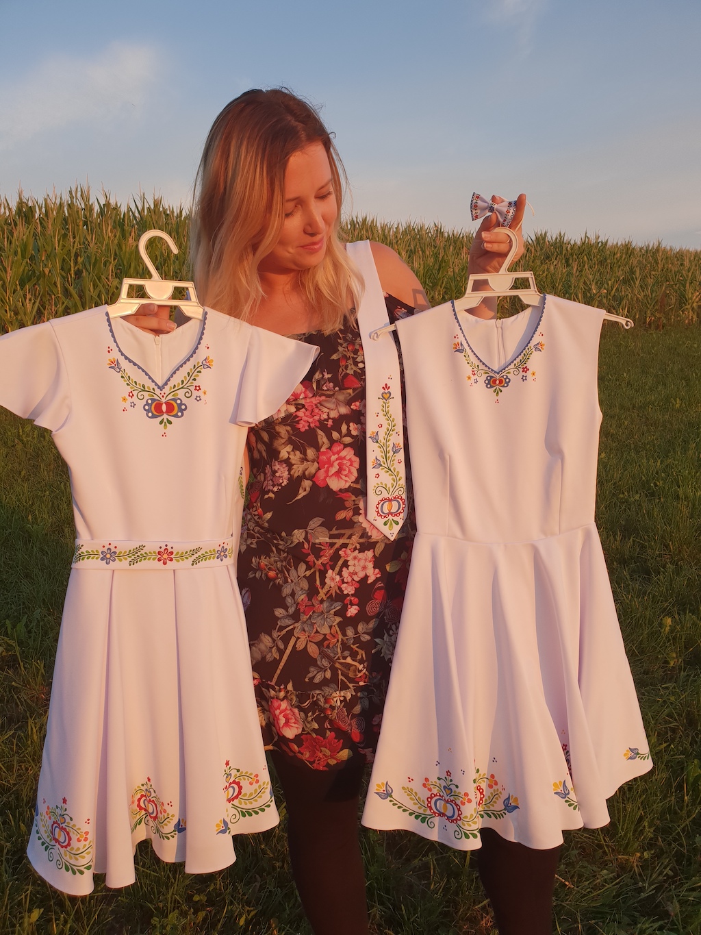 Keďže ma osud zavial za pracovnou ponukou do zahraničia, moju folklórnu “závislosť” som si kompenzovala iným spôsobom ako tancom alebo spevom. Vždy ma fascinoval šarišský kroj – kvetinové vzory alebo aj veľmi zvláštne geometrické vzory na mužských nohaviciach alebo na ženských zásterách a šurcoch.