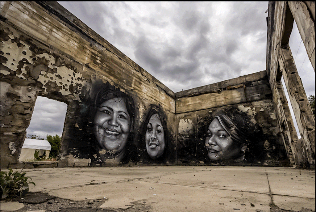 Jeho nostalgická spomienka sa však náhle preruší, keď míňa vyhorenú budovu s nástennými maľbami nezvestných žien – drsné memento násilia, ktoré údolie sužuje.
