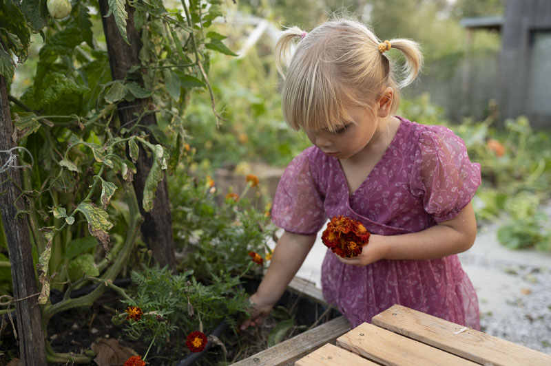 V zeleninovej záhrade majú nezastupiteľnú úlohu kvety, ktoré lákajú opeľovačov, a bylinky, ktoré prirodzene odpudzujú škodcov. Vytvárame aj zátišia pre vtáky, ktorí sú prirodzenými predátormi škodcov. Pôdu systematicky budujeme pravidelným dodávaním živín cez rôzne mulčovacie zmesi – napríklad lístie s kompostom. V týchto vrstvách nachádzajú útočisko užitočné organizmy a ich rozkladom vzniká výživný substrát pre mikrobiálny život v pôde.