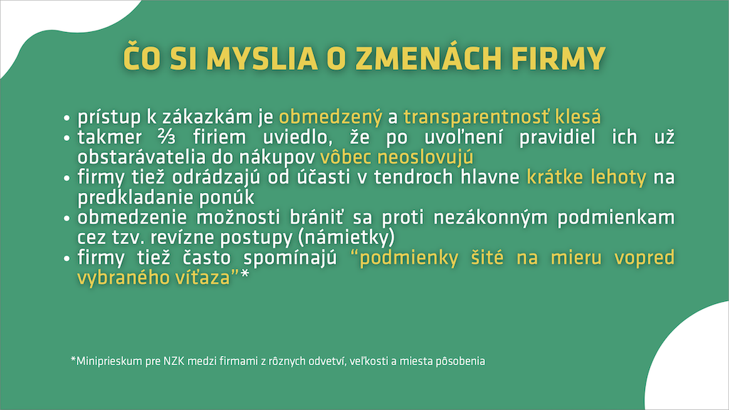 Pri nákupoch bežných tovarov a služieb do 221-tisíc eur stačia obciam a mestám cenové ponuky od 3 vopred vybraných firiem. Nemusia tieto zákazky viac súťažiť, čo municipality aj začali viditeľne využívať. U štátnych úradov je to rovnako pre nákupy pod 143-tisíc eur.