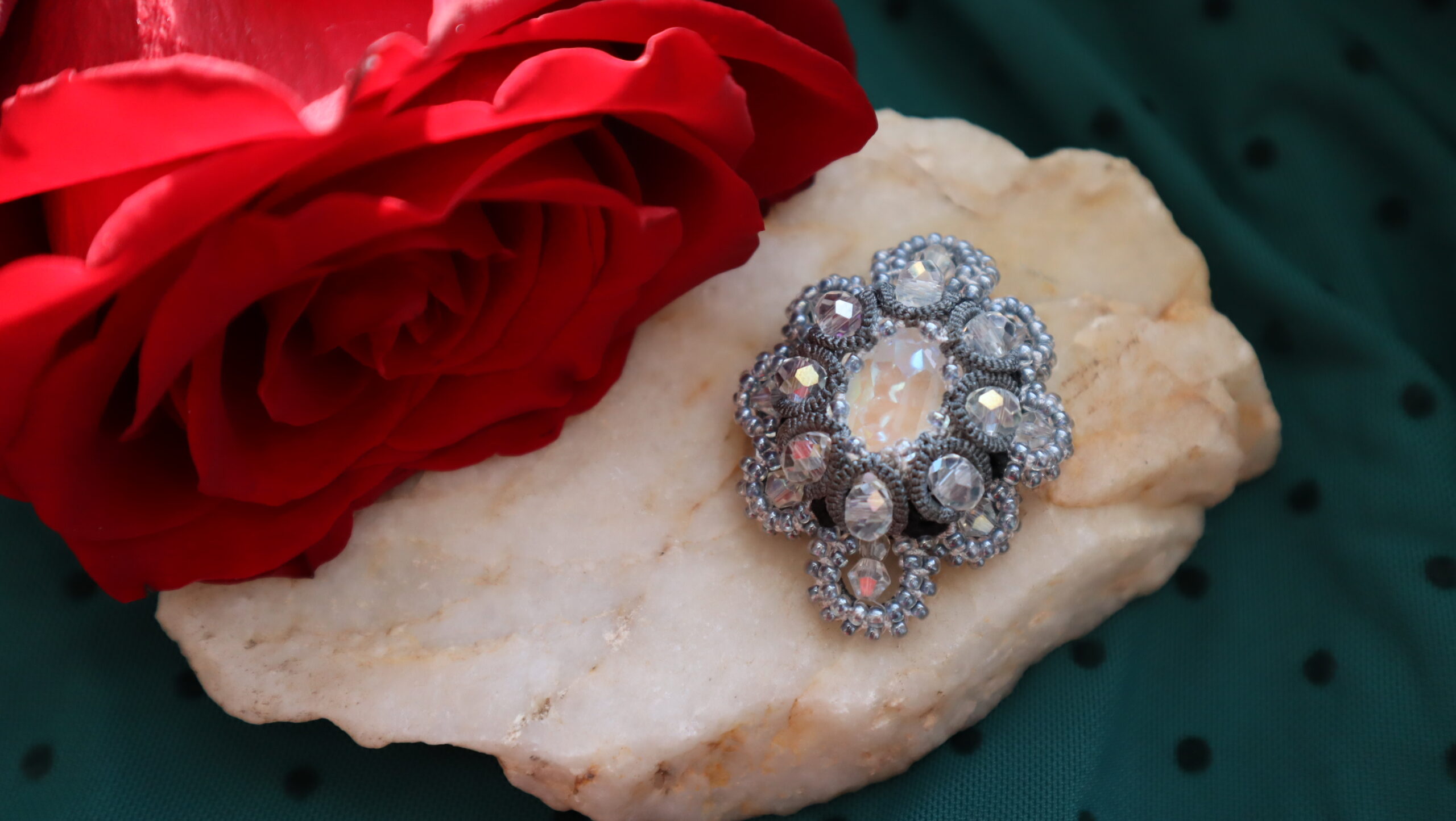 Neskôr, keď som otehotnela, bolo jasné, že pri paličkovaní nezostanem. Hľadala som niečo nové, v čom sa budem môcť hlavne kreatívne realizovať a konečne som sa dostala k frivolitkám, ktoré som chcela vyskúšať už niekoľko rokov. Pri paličkovaní bolo jednoduché tvoriť tradičné krajky, ale pri frivolitkovaní mi bolo hneď od začiatku jasné, že budem tvoriť šperky.