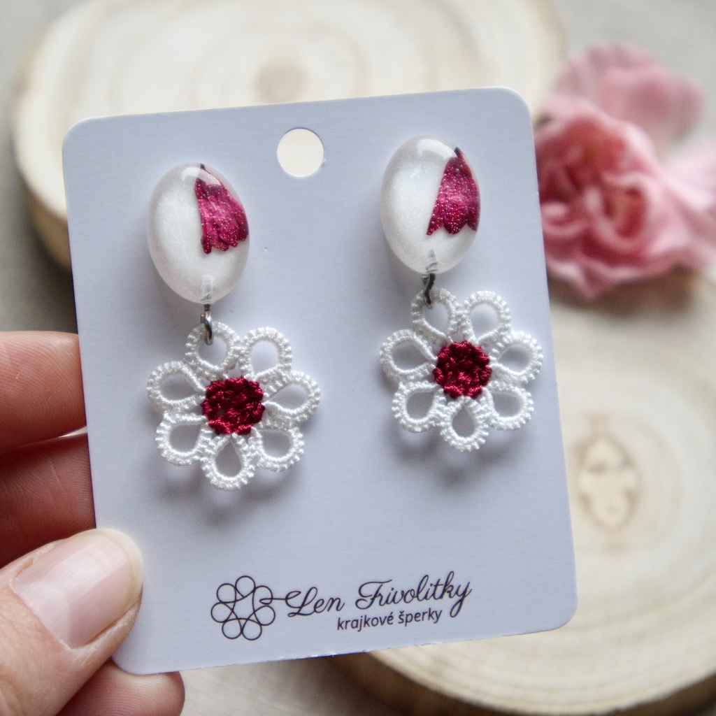 Paličkovanie je pre väčšinu z nás dobre známy pojem, ale pri takom frivolitkovaní je stále čo objavovať. Lenka sa už ako dieťa venovala ručným prácam a ako tínedžerka začala s paličkovanou čipkou. Po 15 rokoch sa odhodlala na menej známe frivolitkovanie a to rovno v podobe šperkov. Dnes touto tradičnou technikou vytvára náušnice, brošne či náramky, ktoré sú originálne a ľahko udržiavateľné. Prezradila nám, ako postupuje pri výrobe frivolitkovaných náušníc, ako sa líši táto technika od paličkovania a s akými materiálmi pri šperkoch pracuje.
