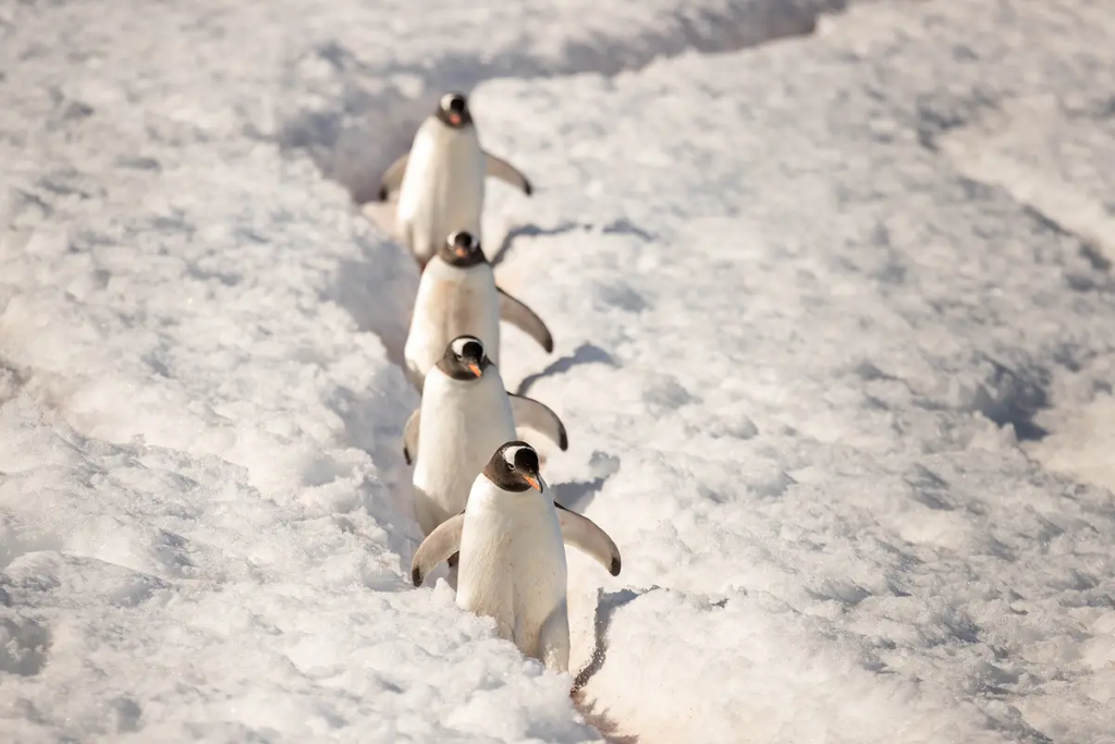 Tak som počas jednej z mojich mnohých ciest do Antarktídy navštívil rozsiahlu kolóniu tučniakov oslích. Po vystúpení z člna a prekonaní zasneženého brehu sa naša malá skupina vydala na pochod. Tučniaky si vytvárajú svoje vlastné „diaľnice“, ale vyberajú si aj ľahšie trasy a využívajú cestičky vytvorené ľudskými návštevníkmi.