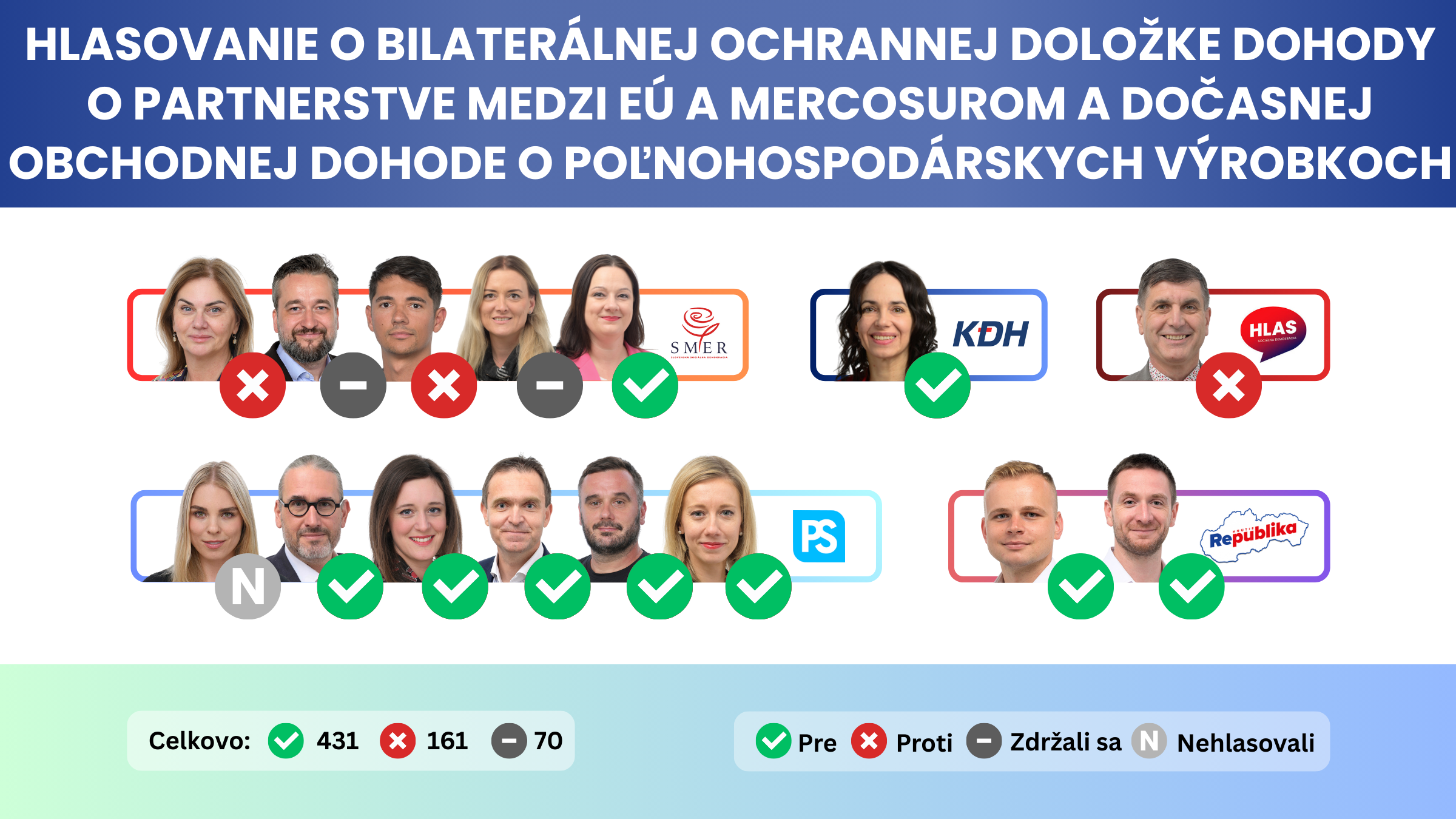 Za túto pozíciu v europarlamente hlasovalo dovedna 431 poslancov. Proti bolo 161 zákonodarcov a 70 sa nepriklonilo na žiadnu stranu.