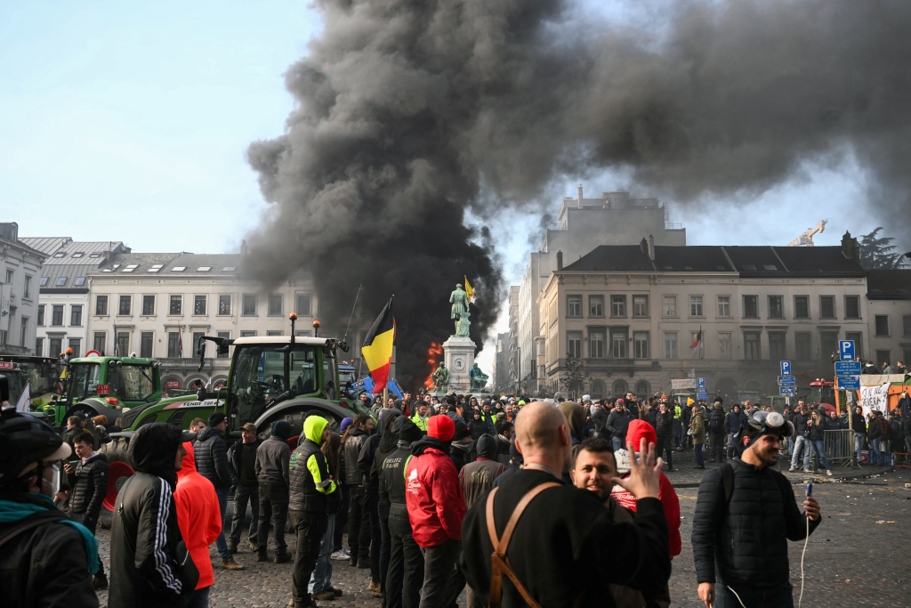 Pochod približne 7000 farmárov takzvanou európskou štvrťou Bruselu, v ktorej je koncentrovaná veľká časť administratívnych budov Únie, bol prevažne pokojný, no pred sídlom Európskeho parlamentu prerástol do potýčok s políciou, keď demonštranti začali odpaľovať svetlice a na zasahujúcich policajtov hádzali zemiaky, fľaše a iné predmety. Polícia sa protestujúcich pokúsila rozohnať slzotvorným plynom a viacero ich zadržala.