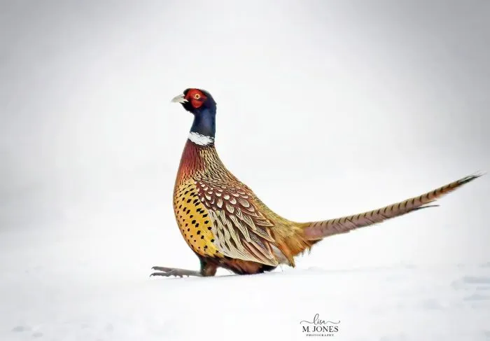 Napriek mrazivému počasiu vzala fotoaparát a vyrazila z Calgary na sever provincie Alberta v nádeji, že sa jej podarí spraviť zábery snežných sov. Cesty boli zľadovatené a nebezpečné, no jej odhodlanie silné. Hoci nenašla žiadne snežné sovy, zazrela však jedného zástupcu druhu, ktorého často nevídala. Na pozadí nepoškvrneného bieleho snehu vynikal majestátny bažant s výrazným pásikom na krku.