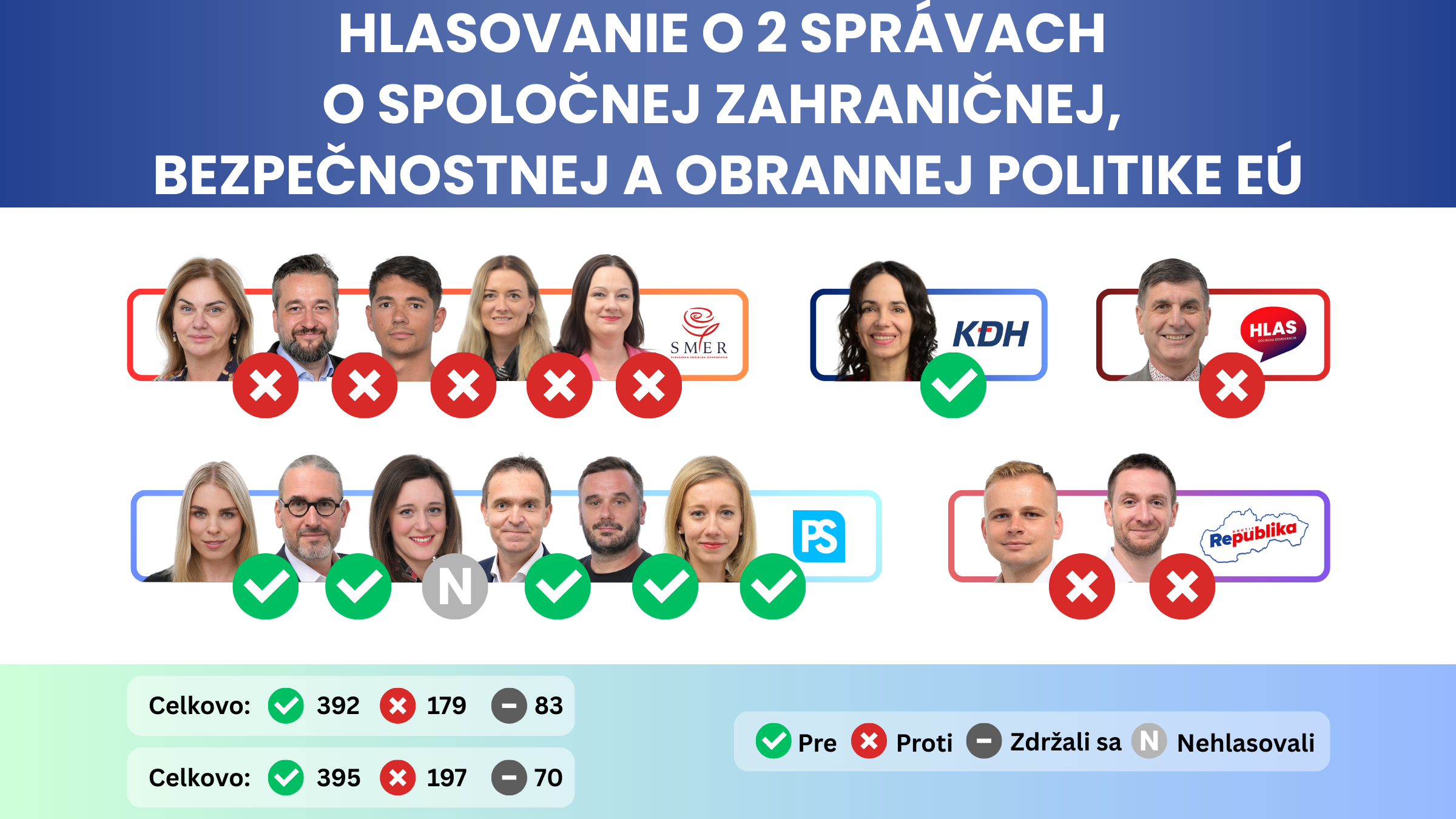 Zo slovenského pohľadu sa obe hlasovania skončili identicky. Správy podporili Veronika Cifrová Ostrihoňová, Martin Hojsík, Ľudovít Ódor, Michal Wiezik, Lucia Yar (všetci PS/Obnovme Európu) a Miriam Lexmann (KDH/Európska ľudová strana).