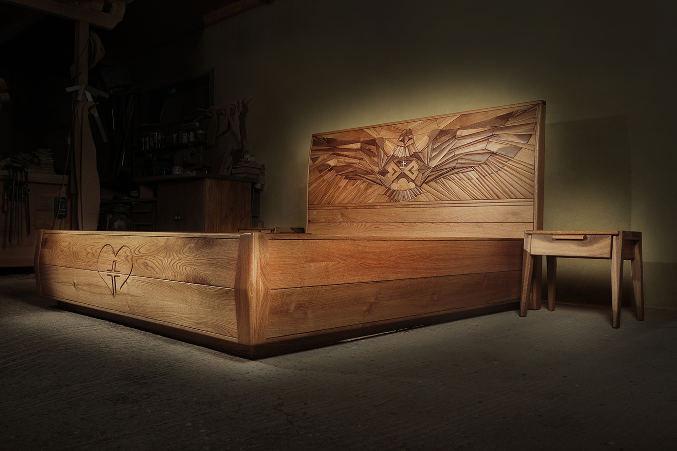 Základom kvalitného spánku je dobrý matrac a ja dotváram tú pocitovú časť, aby aj spánok mohol byť krásny. Zákazníkom plním ich sny pri tvorbe postele na mieru. Ponúkam okrem požadovaných rozmerov – výšky matraca od podlahy, výšky zadného čela postele, aj aby požadovaný motív nezanikol, a tiež výber dreviny. Mojou špecialitou sú postele s drevenou intarziou – mozaikou z viacerých druhov drevín, ktoré sú časovo najnáročnejšie a tvorba zaberie zhruba dva mesiace.
