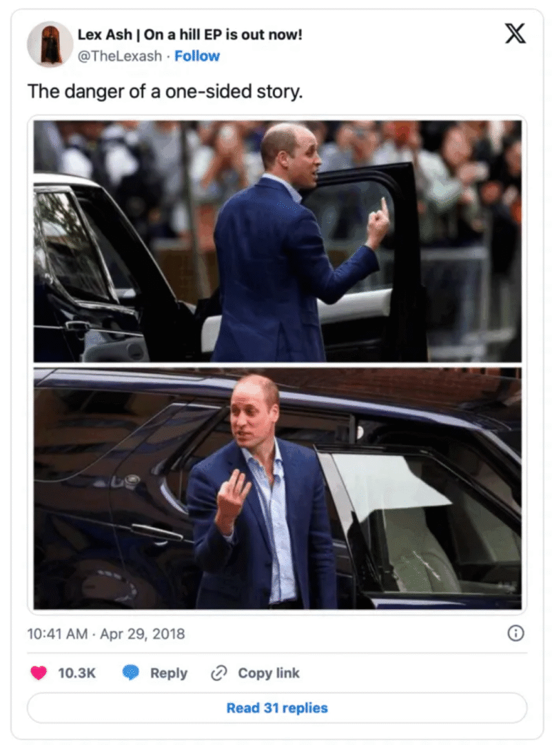 možno si ešte spomínate na fotografie princa Williama, ktoré v roku 2018 vyvolali rozruch. Po narodení svojho syna Louisa pred nemocnicou gestom ruky naznačil, že je teraz hrdým otcom troch detí. Fotografia zhotovená zboku však toto gesto zachytila tak, akoby princ ukazoval novinárom prostredník.