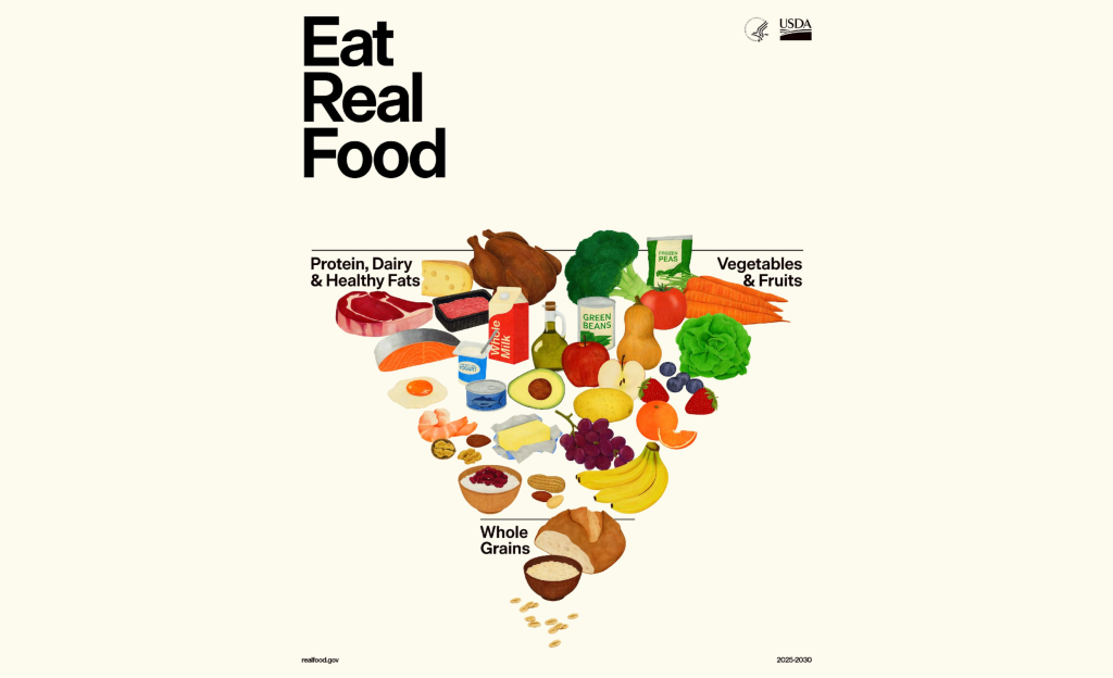 Nové odporúčania kladú oveľa väčší dôraz na bielkoviny než predchádzajúce verzie. Ministerstvo zdravotníctva zverejnilo aj nový „prevrátený potravinový pyramídový model“, v ktorom sa mäso, mliečne výrobky a zdravé tuky nachádzajú na rovnakej úrovni ako ovocie a zelenina. Na úplnom spodku pyramídy sa ocitli celozrnné potraviny bohaté na vlákninu, ako napríklad ovos.
