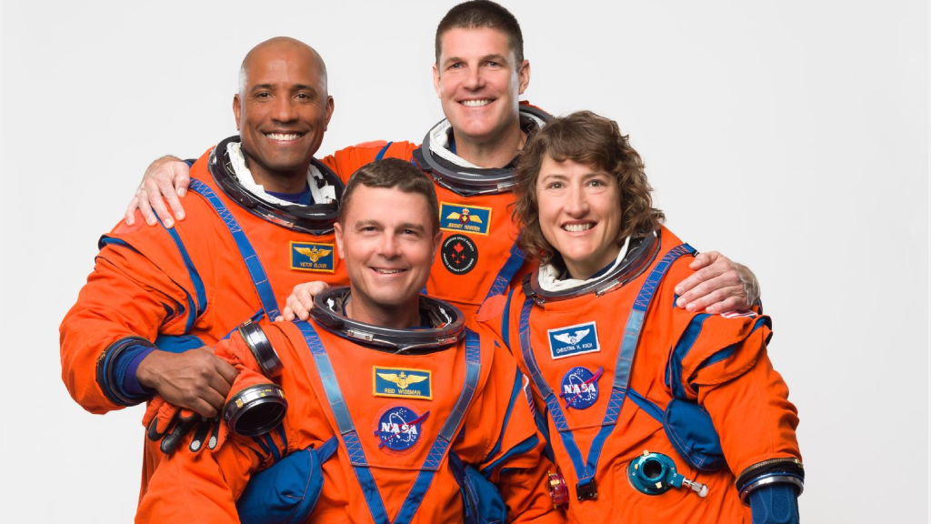 Štvorčlenná posádka Misie Artemis II - (zľava doprava) Victor Glover, Reid Wiseman, Jeremy Hansen a Christina Kochová (NASA Artemis/FB)