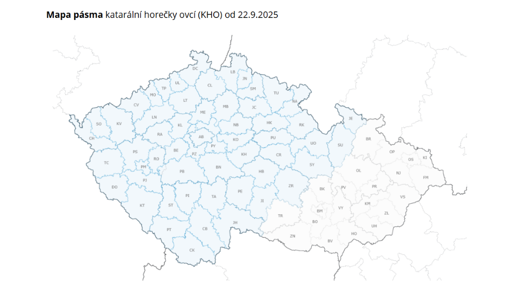 Katarálna horúčka oviec sa v Česku po pätnástich rokoch znova objavila vlani v septembri. Choroba sa prejavuje krvácaním, zápalom a opuchmi v ústnej dutine, nosných dierkach, viečkach a ušiach zvierat. Najúčinnejšou ochranou je preventívne očkovanie proti infekcii. Choroba nie je prenosná na človeka.