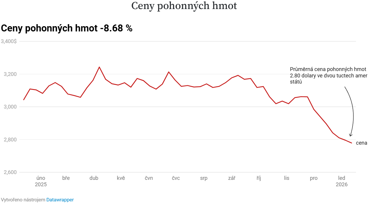 Jedným z pozoruhodných výsledkov politiky Trumpovej administratívy je pokles cien pohonných hmôt. Kombinácia rekordnej ťažby a deregulácií viedla k nižším nákladom na energiu pre podniky aj spotrebiteľov. Cena ropy sa pohybuje pod hranicou 60 dolárov za barel a vo viac ako dvoch desiatkach štátov je priemerná cena benzínu nižšia ako 2,80 dolára za galón (0,63 eura za liter). Analytici očakávajú, že tento trend bude pokračovať aj v nadchádzajúcom roku.