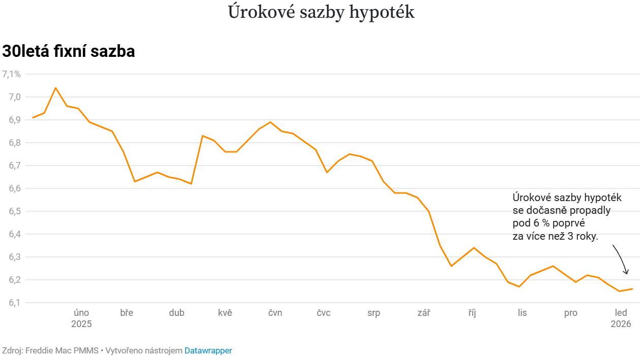 Na začiatku druhého funkčného obdobia prezidenta Donalda Trumpa sa úroková sadzba 30-ročných hypoték s fixnou úrokovou sadzbou pohybovala okolo 7 %.