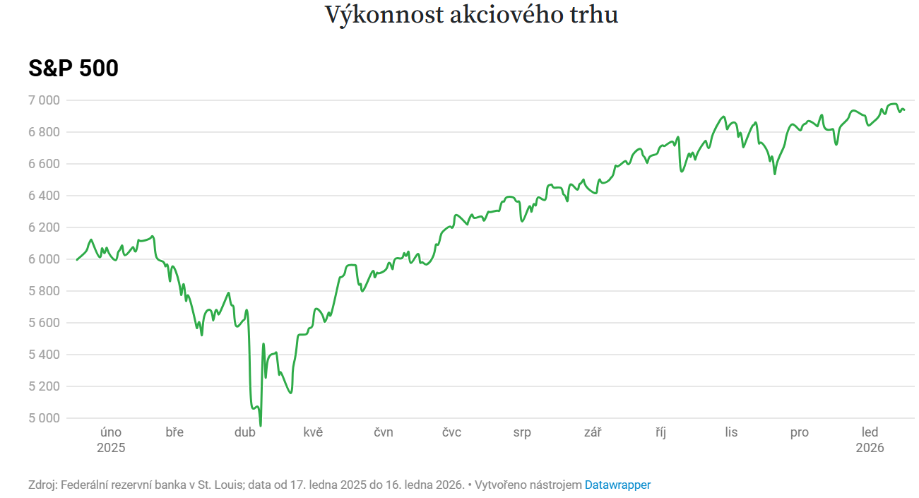 Od nástupu prezidenta Donalda Trumpa do úradu v januári 2025 dosiahli hlavné akciové indexy nové maximá. Index S&P 500 do 14. januára vzrástol takmer o 16 %, pričom v rovnakom období Trumpovho prvého funkčného obdobia vzrástol o 24 %. Za posledných 12 mesiacov vzrástol index Dow Jones Industrial Average o 13 % a technologický index Nasdaq o 20 %.