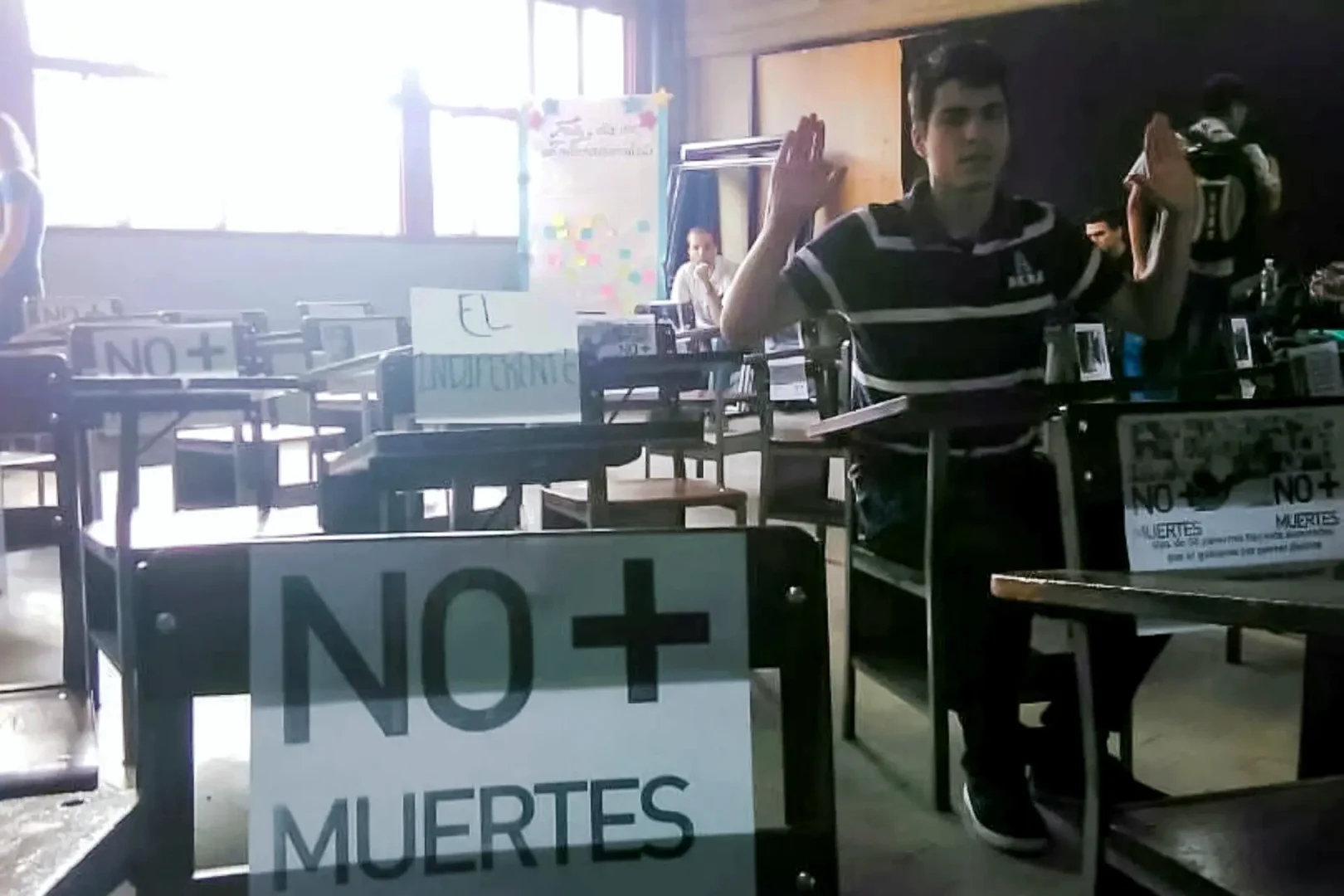 Mladý Daniel Tirado na archívnej snímke ako účastník študentského hnutia v triede. Tirado sa zapojil do politiky už ako tínedžer a čoskoro sa zaradil medzi odporcov Madurovho režimu. (Zdroj: archív Daniela Tirada)