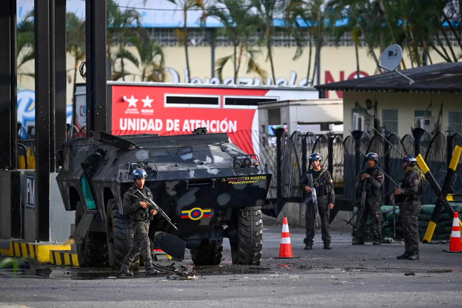 Príslušníci Národnej gardy stoja na stráži vo Fuerte Tiuna, najväčšom vojenskom komplexe Venezuely, po zajatí venezuelského vodcu Nicolása Madura v Caracase 3. januára 2026 (Foto: Federico Parra/AFP via Getty Images)