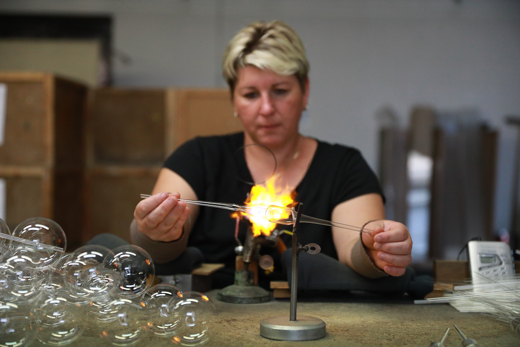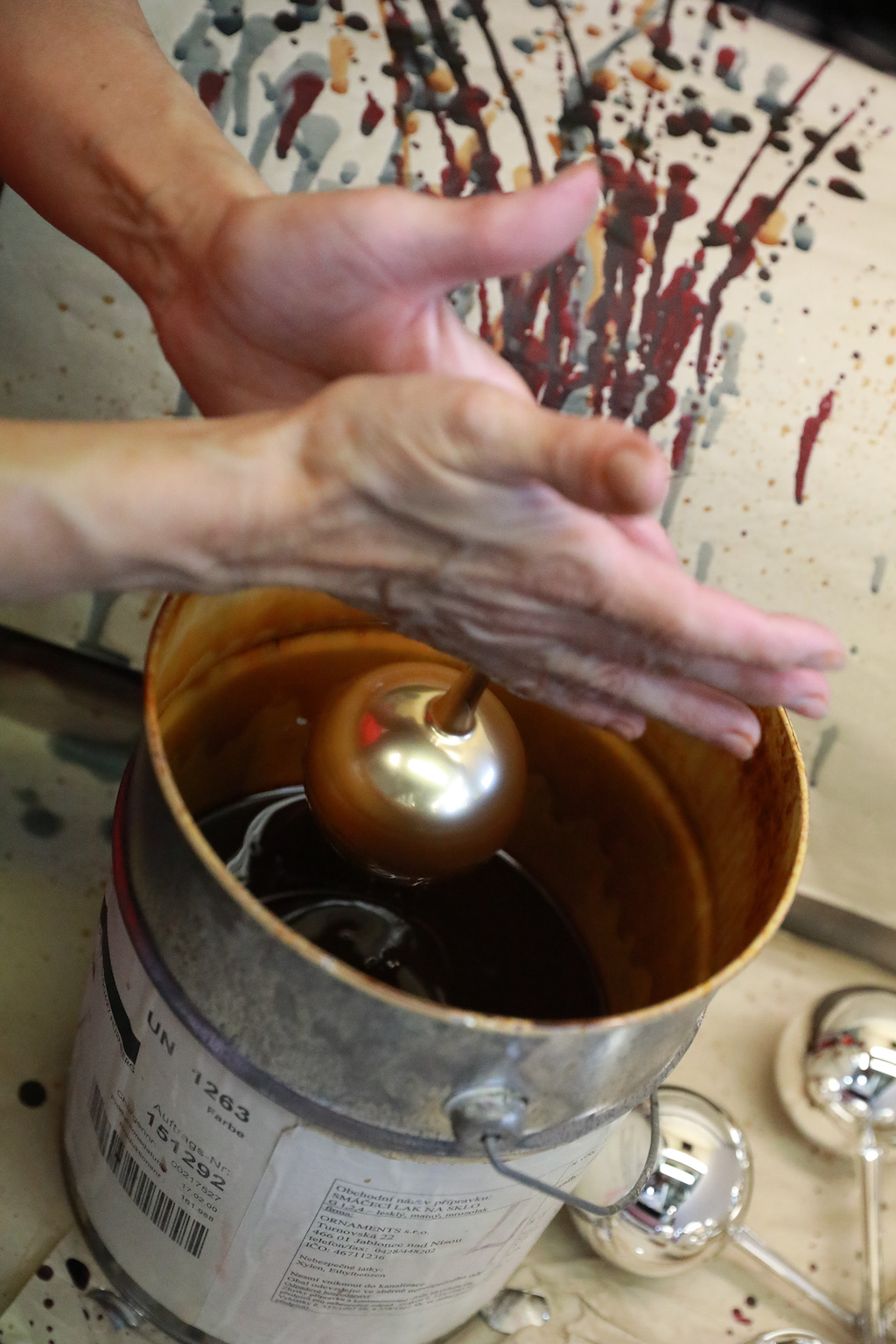 Vyfúknuť napríklad klasickú vianočnú guľu trvá len pár desiatok sekúnd, ale k dokonalosti vedú roky praxe. Potom nasleduje proces striebrenia, farbenia a zdobenia. Každý krok má ale svoje pravidlá a vysoké nároky. Vyfúknutá ozdoba musí najprv vychladnúť a potom putuje do tzv. striebriarne, kde sa zvnútra pokryje tenkou vrstvou striebra. Až potom prichádza na rad farbenie a následne maliarky. Ozdoba si musí najprv trochu „odpočinúť“, než sa z nej stane hotová ručne vyrábaná vianočná ozdoba.