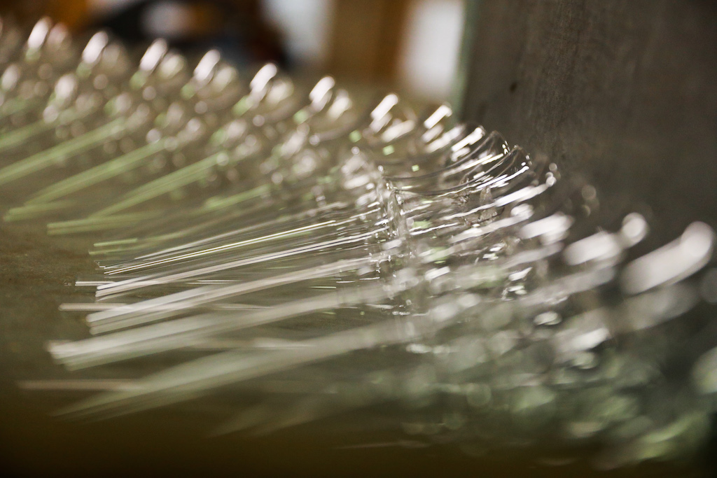 Používame špeciálne sklenené trubice s vysokou kvalitou a čírosťou. Z nich sklári ručne vyfukujú vianočné gule, zvončeky, cencúle alebo sklenené figúrky na stromček. Fúkanie je úplný základ výroby. Sklár si vezme sklenenú trubicu, nahreje ju nad kahancom a potom do nej fúkne presne toľko vzduchu, aby vznikla vianočná guľa, vianočný špic alebo sklenený zvonček. Fúka úplne voľne podľa citu a skúseností.