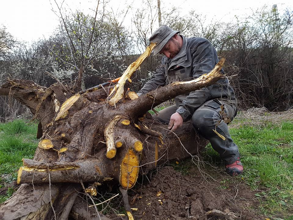 Povedal by som, že hľadanie materiálu. Som vášnivý turista a na všetkých potulkách horami som narazil na takzvané „nádory” na stromoch. Zapamätal / zapísal som si ich a o pár dní som sa s pílou a krošňou vrátil, aby som ich dostal do dielne. Chodiť z hôr a na chrbte odniesť 50-kilový kus dreva, z ktorého možno niečo neskôr bude, bolo určite najnamáhavejšie.